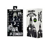 Hey kids, it’s Zombo! From Rob Zombie’s The Munsters, Zombo is coming at you live as an 8” clothed action figure from NECA. Tune in to The House of Zombo, sponsored by Crumble Creature Crackers, and play along with this Zombo figure, which features tailored fabric clothing, removable hat, and cereal box. And remember, kids – for a limited time, get your very own Black Plague Spreader Kit in specially marked boxes of Crumble Creature Crackers cereal! The Zombo action figure comes in exclusive window box packaging with slipcase styled after Crumble Creature Crackers.