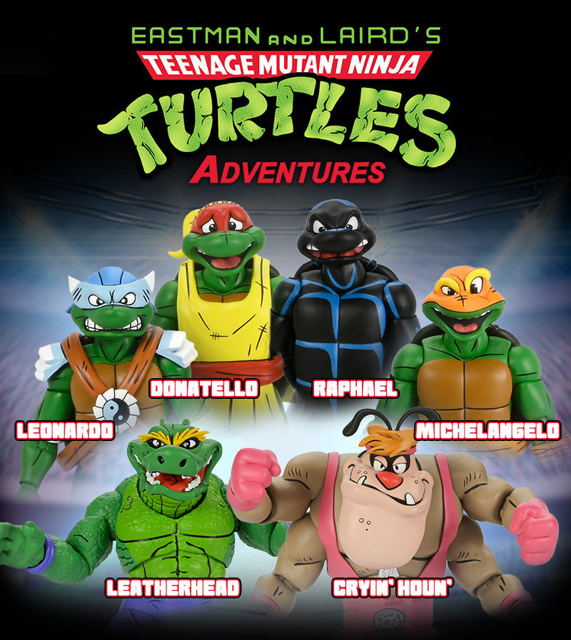 Straight from the pages of Eastman and Laird’s Teenage Mutant Ninja Turtles Adventures comic book series from Archie Comics, it’s the Stump Wrestling Turtles, Leatherhead, and Cryin' Houn' action figures by NECA!